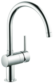 In de eenvoud van het ontwerp schuilt de kracht. Want deze kraan met zijn C-vormige uitloop mag dan eenvoudig lijken, binnenin schuilen veel praktische toepassingen waarmee het in de keuken fijn werken is. Neem de hoge uitloop bijvoorbeeld. Hiermee is het vullen van ook de hoge pannen heel praktisch. Daarbij kun je de uitloop in een 0°-, 150°- of 360° draaihoek instellen. Je kunt de kraan ook in één van de standen fixeren. Wil je dit niet, dan blijf je de flexibiliteit van de kraan ten volle benutten en kun je bijvoorbeeld heel makkelijk wisselen tussen twee spoelbakken of pannen. Door de GROHE SilkMove® techniek is de bediening van de kraan heel makkelijk en kun je de watertoevoer en de temperatuur soepel en precies regelen. Het installeren van de kraan is kinderspel door het snelmontagesysteem met z’n eenvoudige handleiding. De kraan is uitgevoerd in krasvast GROHE StarLight®, een glanzend chromen beschermlaag, die weinig onderhoud vergt en een zeer lange levensduur heeft.